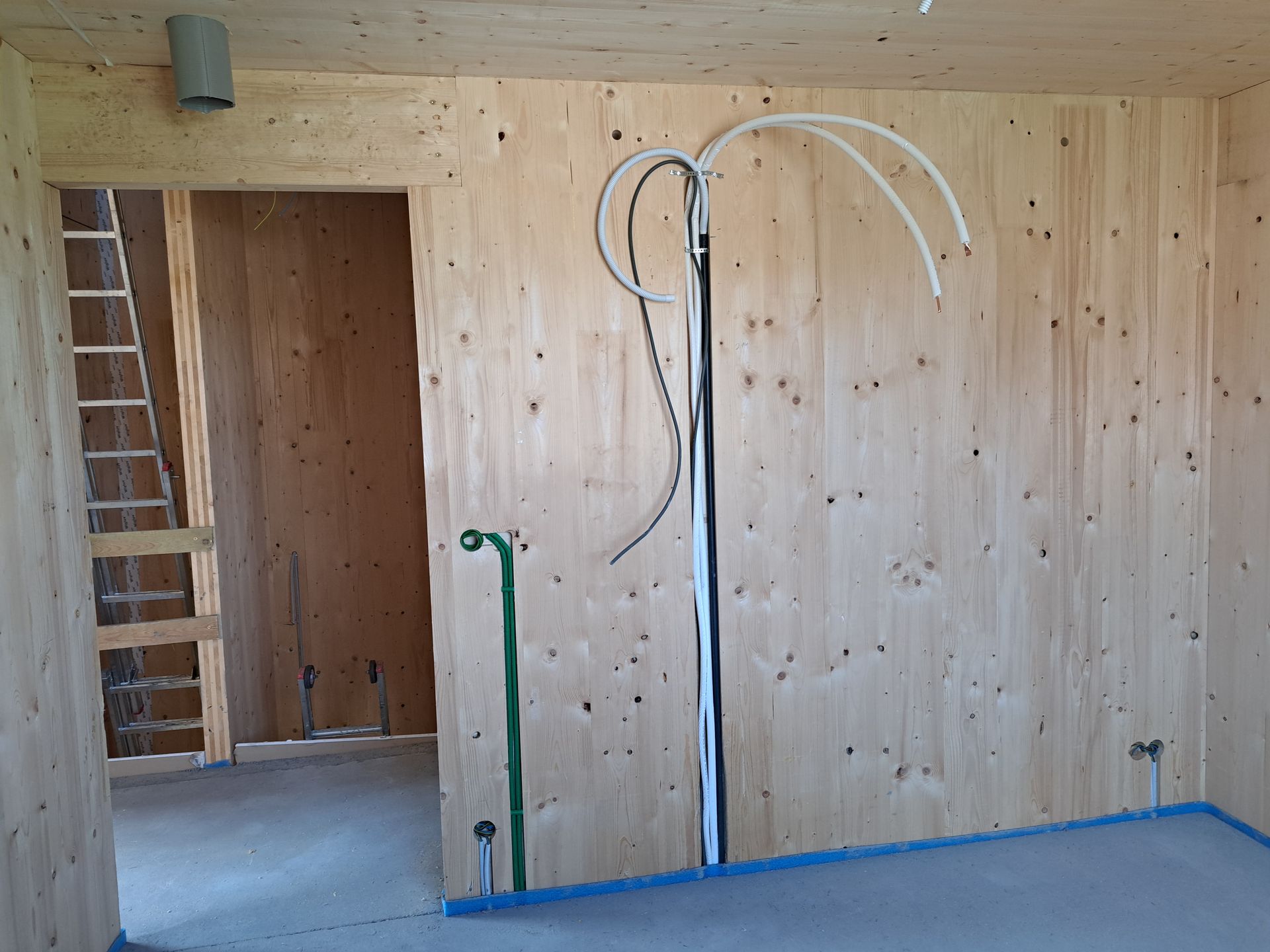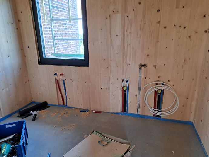 Binnenafwerking kan in zichtkwaliteit (een meerprijs voor de CLT) maar er kan ook met gyproc afgewerkt worden of een combinatie van beiden. Badkamer en keuken kan afgewerkt worden zoals gewenst (tegels ,steentapijt, ...)